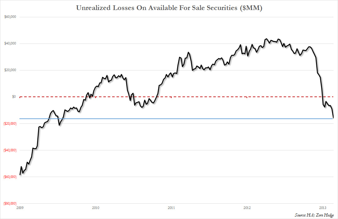Here is a picture from Zero Hedge worth 1000 words in explaining the consequences on this side of unstable rates. Banks are taking big (unrealized, so far) losses.