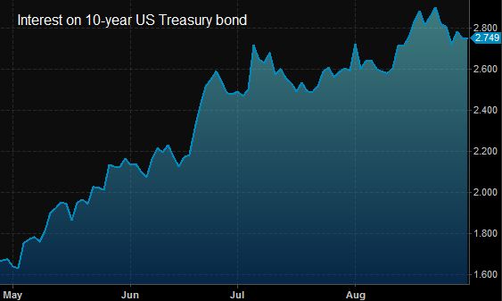 Interest rates have risen since May of this year, from under 1.7% to over 2.7%. By any measure, that is an enormous move.
